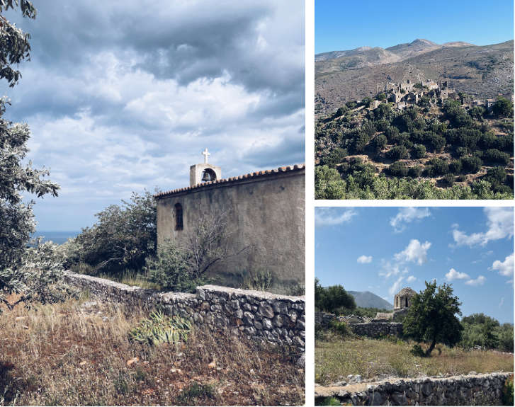 Les paysages sont arides. Méditerranéens, mais dans leur brutalité, leur rugosité. On traverse des villages isolés, certains hameaux sont même quasiment abandonnés. Tous en pierres grises, loin des représentations de la Grèce et ses villages blanchis qu’on trouve sur papier glacé. Des centaines de tours, caractéristiques de la région, se dressent au milieu de ces villages perdus à la beauté singulière que nous n'avions encore rencontrée nulle part ailleurs. On se retrouve rapidement en “safari”, au cours duquel on croise chèvres, cochons et autres animaux dits d’élevage qui se promènent ici en toute liberté, sur les routes quelquefois très abruptes de cette région sauvage, loin des ruelles pavées de Mykonos. Une autre Grèce.