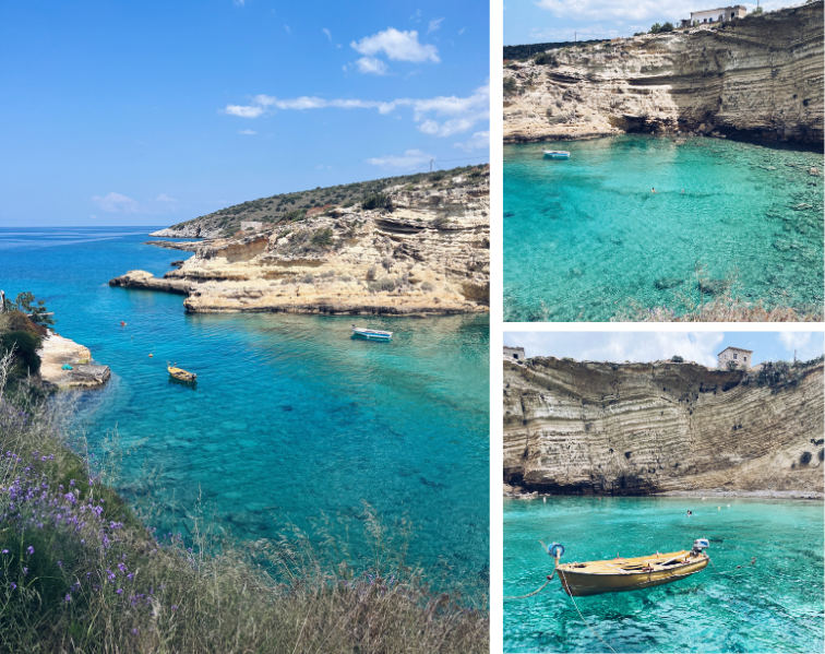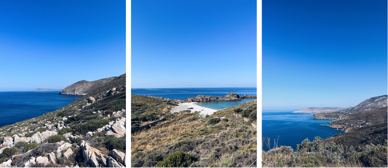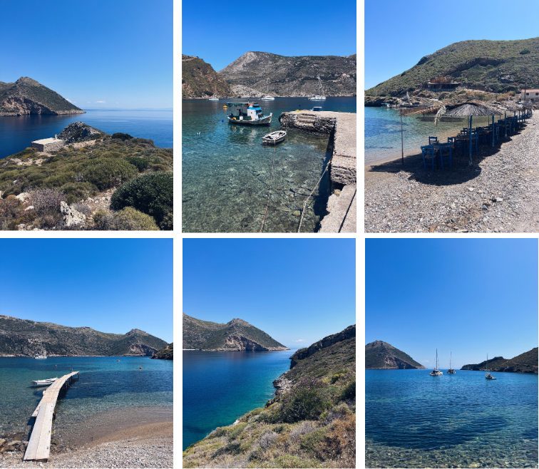 Nous avons adoré Porto Kagio où viennent se mettre à l’abri quelques voiliers et dont la (presque) seule rue, qui borde la plage, vous emmène en quelques minutes jusqu'à l'église Agios Nikolaos en vous offrant de beaux panoramas sur les villages et criques alentour. Le calme absolu, avec pour seuls perturbateurs une vieille dame qui étend son linge, et un pêcheur qui nettoie son bateau. On s’assoit sur le banc de l’église, à l’ombre, et on profite de la beauté des lieux, en silence.