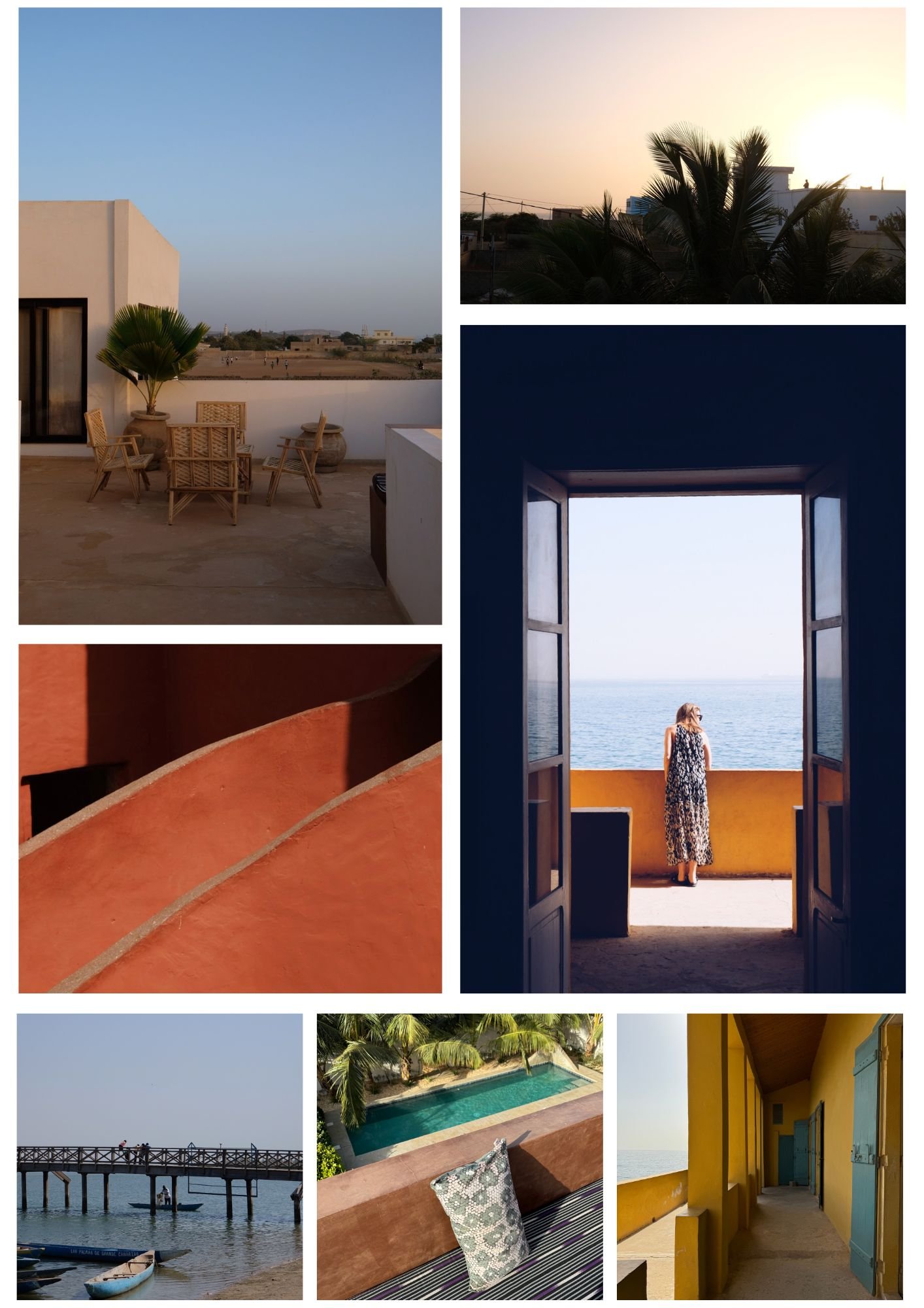 Les premiers matins, c’est aussi le temps de l’excitation, des premières images qui s’impriment sur la rétine. Nous sommes arrivés de nuit à l’aéroport de Dakar, si bien que nous n’avons pas vu grand-chose de ce qui sera notre “chez nous” pour quelques jours. Ce premier réveil est matinal. Il l’est en fait toujours, décalage horaire ou pas. Par soif de découvrir ce qui nous entoure. Par crainte peut être qu’en se levant (trop) tard on rate l’occasion de prendre le pouls des premières lueurs, de goûter aux premières saveurs. Se lever tôt pour s’émerveiller vite. Parce qu’ils surviennent souvent plusieurs mois après avoir préparé le voyage, ces premiers instants sont revigorants. Grisants même.